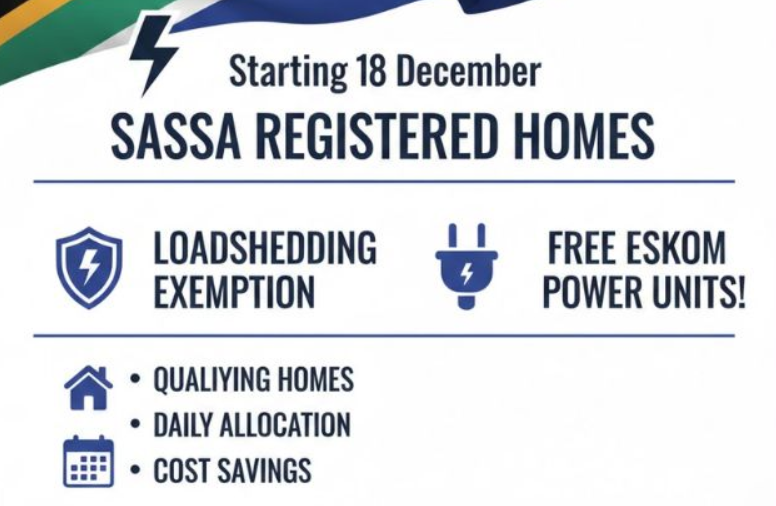 Eskom Electricity: From 18 December, many South African grant-dependent households are set to benefit from a new electricity relief measure announced by the South African Social Security Agency. Under this initiative, eligible SASSA-registered homes will receive free Eskom power units and protection from scheduled loadshedding. The goal is to ensure that vulnerable families maintain access to essential electricity for daily living, health, safety, and small income-generating activities.